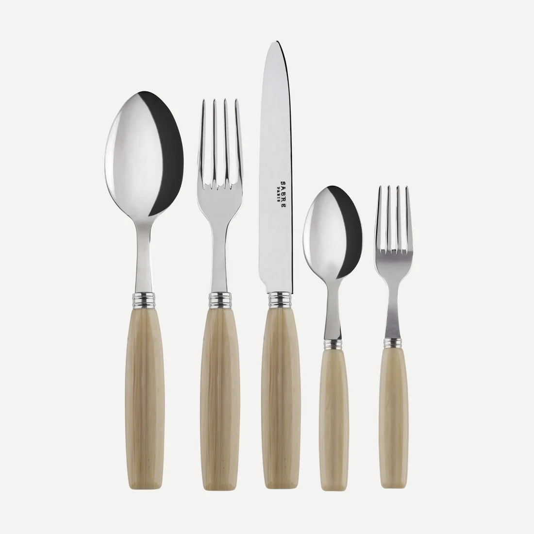 The Djembe collection from Sabre Paris draws inspiration from traditional African percussion, blending bold design with refined French craftsmanship. The deep, swirling tones of the faux horn finish evoke natural elegance, while the collection’s clean, rounded lines create a sense of balance and rhythm at the table. Striking yet versatile, Djembe Faux Horn adds a distinctive touch of sophistication to any dining setting.